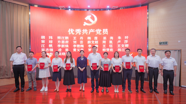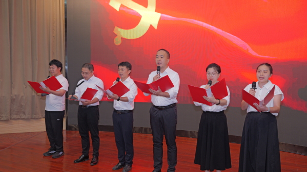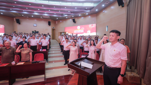 “我志愿加入中国共产党,拥护党的纲领,遵守党的章程,履行党员义务……”表彰大会上,邓文君带领在场党员重温入党誓词,党员们面向党旗、高举右拳,让红色基因在铮铮誓言中焕发新的时代光芒。