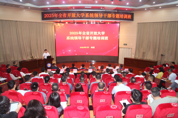 7月26日至27日,2025年全省开放大学系统领导干部专题培训班在江西南昌举办。江西开放大学党委书记贺瑞虎作开班动员讲话,党委副书记、校长黄平槐主持开班式。学校党政领导班子成员,各设区市开放大学、部分县级开放学院以及学校各部门、单位主要负责人近80人参加培训。国家开放大学出版传媒集团总编辑刘占荣一行应邀来校交流指导。