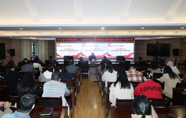 12月4日下午,学校宣讲团团员、校党委委员、宣传部部长张明以《在教育强国的征途上做好优化终身学习公共服务的排头兵》为题宣讲党的二十届四中全会精神。机关党委一支部、三支部全体党员,继续教育学院、老年教育学院全体教职工,各专业学院、社会培训学院一线教师、青年教师、辅导员代表参加学习。