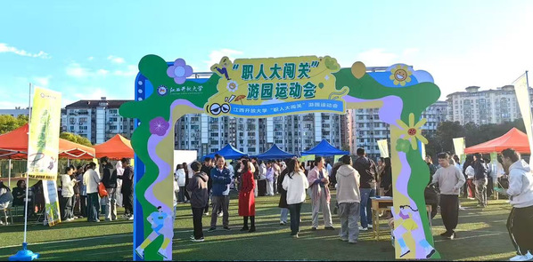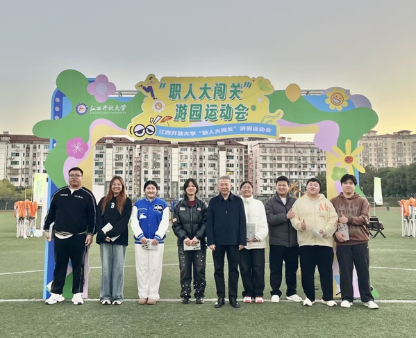 11月19日,江西开放大学西湖校区田径场活力迸发,一场别开生面的“职人大闯关”游园运动会在此欢乐上演。校党委委员、副校长徐光兵来到现场,与师生亲切交流,共同体验运动乐趣。