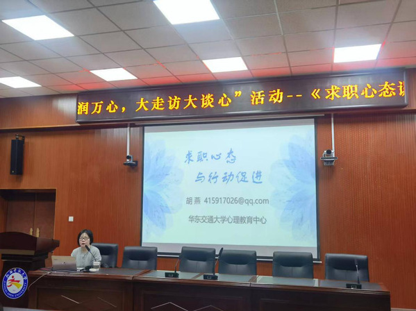 为帮助学校毕业生在就业关键期保持积极健康的求职心理状态,提升职业适应能力,12月5日下午,学校邀请了华东交通大学心理健康教育专家胡燕博士在西湖校区学术报告厅举办了“求职心态调节与行动促进”专题心理健康教育讲座。全体班级心理委员、心理联络员,专兼职辅导员以及心理健康教育科专职心理老师参加讲座。