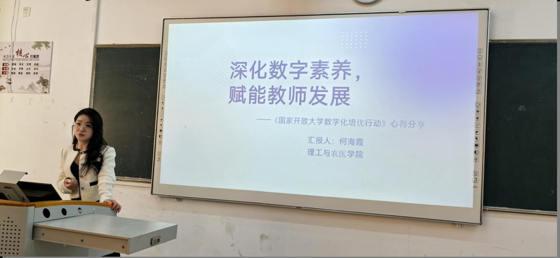 理工与农医学院先后组织参加国家开放大学数字化培优行动培训的何海霞老师、荣获国家开放大学教学技能大赛一等奖的方早老师,面向全院教职工开展人工智能赋能教学经验分享活动。学院全体教师齐聚一堂,共同学习参赛技巧,探讨人工智能与教学的深度融合路径。