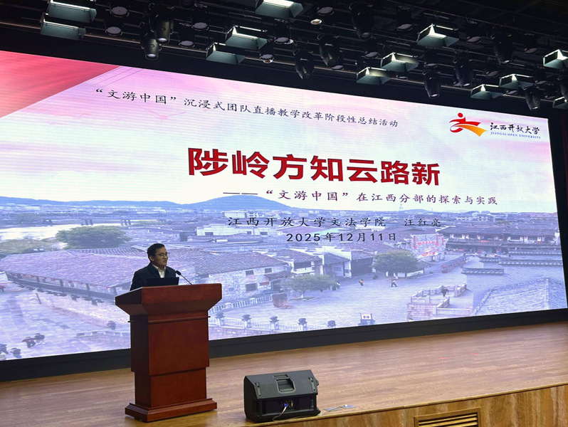 12月10日至11日,国家开放大学“文游中国”沉浸式团队直播教学改革阶段性总结活动在五棵松校区举行。国家开放大学党委委员、副校长李松出席开幕式并致辞。江西开放大学作为“文游中国”第二讲“赣水黎河生‘仲马’梦里江南恨水流——张恨水的江西情怀与文学创作”承办单位,教学团队成员代表参加本次活动。