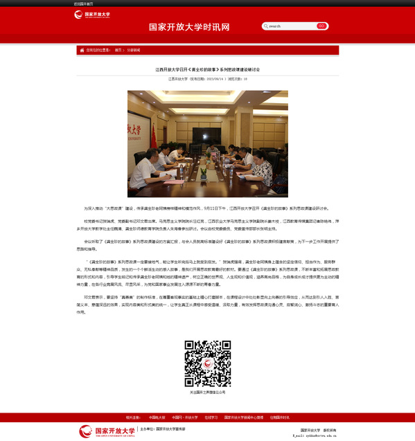 为深入推动“大思政课”建设,传承龚全珍老阿姨榜样精神和模范作风,9月11日下午,江西开放大学召开《龚全珍的故事》系列思政课建设研讨会。