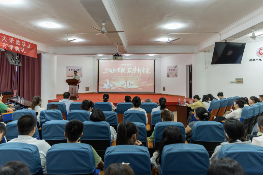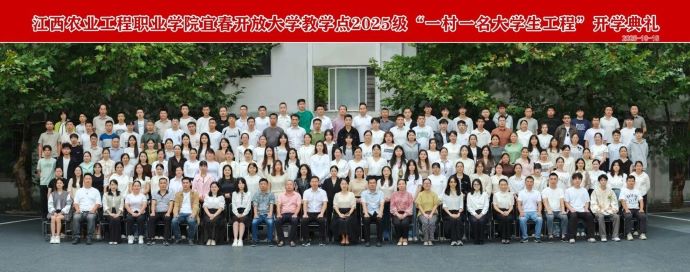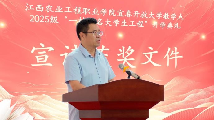 金秋启新,逐梦笃行。10月18日上午,江西农业工程职业学院宜春开放大学教学点2025级“一村一名大学生工程”开学典礼在学术报告厅举行。宜春开放大学党委书记金文玲、校长李军出席典礼,党委委员、副校长彭文辉主持典礼,宜春开放大学全体教师、江西农业工程职业学院教师代表和2025级“一村一名大学生工程”新生参加了开学典礼。