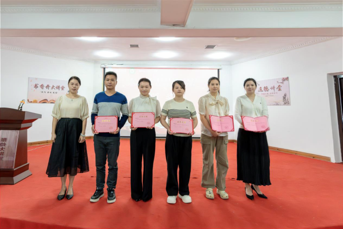 金文玲为获奖学生颁发荣誉证书并合影留念。