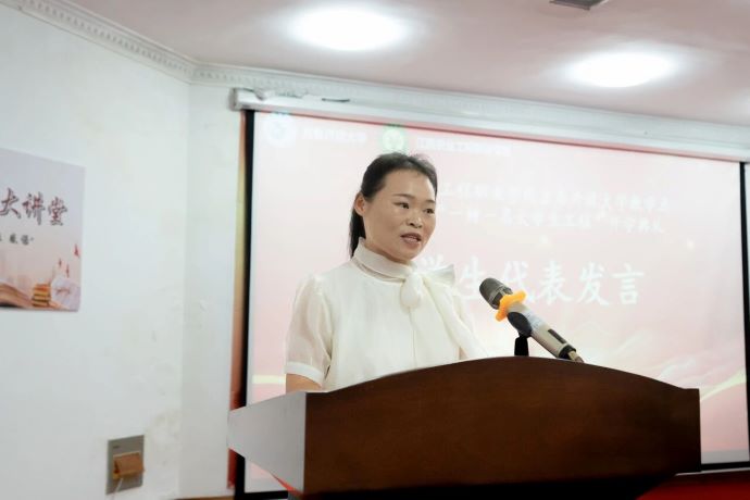 随后,金文玲发表致辞,她首先向新生的到来表示热烈欢迎,向莅临现场的江西农业工程职业学院的各位嘉宾致以诚挚问候,同时向获得“学习标兵”的同学送上衷心祝贺。她介绍,宜春开放大学的前身是1979年成立的宜春广播电视大学,历经46年办学积淀,依托国家开放大学系统资源优势与办学经验,已为宜春经济社会发展培养本、专科毕业生9万余人,如今已成为服务当地全民终身学习的重要力量与坚实支撑。