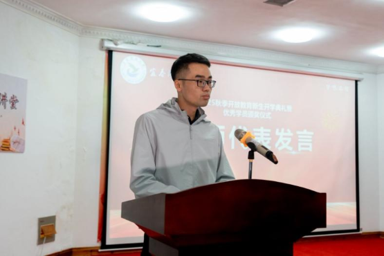 宜春开放大学教师代表余春波、学士学位学生代表刘承轩和学习标兵学生代表陈幼林先后上台发言。余春波说,选择宜春开放大学,对很多同学而言是一次“再出发”。无论你是职场人、父母,还是追梦者,这里都以“开放、共享、灵活”的姿态,为每一个追求进步的人提供平台。没有“太晚”,只有“开始”;没有“跟不上”,只有个性化支持——线上线下课程、经验丰富的教师团队和便捷的学习资源,都将助你高效学习、兼顾生活。