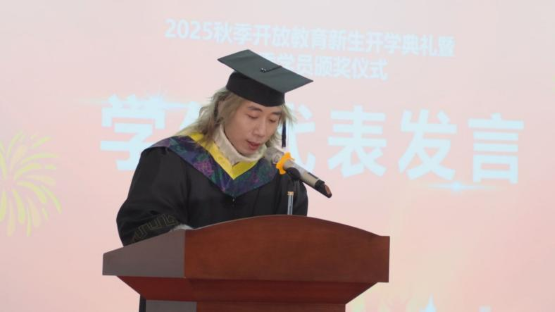 陈幼林结合自身在互联网营销行业的工作经历,分享了在开放大学学习的三点心得:一是以“空杯心态”接纳新知,将校训精神融入日常学习;二是以“实践思维”运用新知,将管理理论与工作实际相结合,让学习“落地生根”;三是以“同行之心”携手共进,在集体中互相砥砺,共同成长。她感谢学校提供的灵活学习平台和老师的悉心指导,并呼吁同学们以终身学习之初心,收获知识的深度与能力的广度。