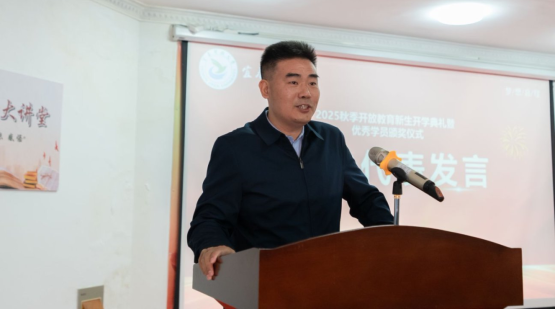最后,校长李军发表致辞。他回顾了学校46年的办学历史与成就,并对全体同学提出三点期望:一要立心铸魂,以理想信念锚定人生航向;二要科技赋能,积极拥抱人工智能,优化学习路径;三要善用时光,通过科学规划与主动寻求支持,巧妙化解工学矛盾。他勉励同学们在宜春开放大学这片沃土上,让学习梦想落地生根,成就精彩人生。