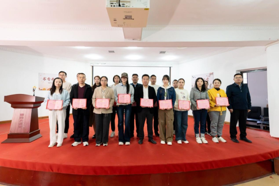 校长李军为获奖学生颁发荣誉证书并合影留念。
