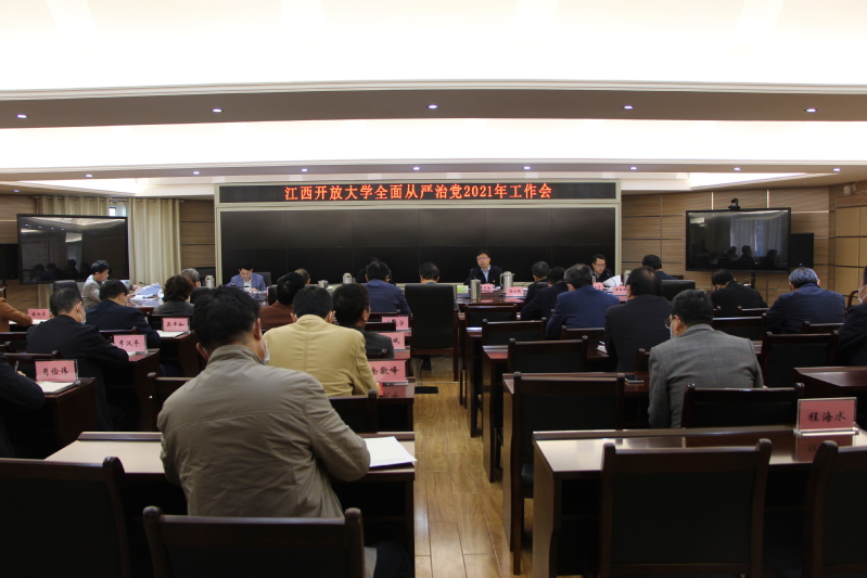 3月26日下午,江西开放大学在青山湖校区三楼多功能厅召开2021年全面从严治党工作会议。在家校领导班子成员和各部门(单位)主要负责人,高职学院纪委书记,人武学院纪委书记、机关党委各党支部书记参加会议。会议由校党委副书记、校长黄平槐主持。