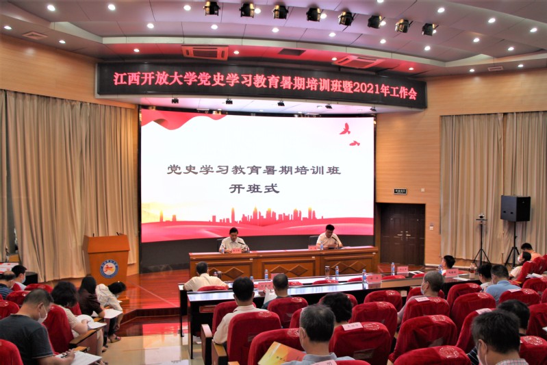 8月26日,江西开放大学党史学习教育暑期培训班暨2021年工作会在南昌召开。校领导,全体处级干部、各科级部门的负责同志参加开班式。校党委副书记、校长黄平槐主持开班式。
