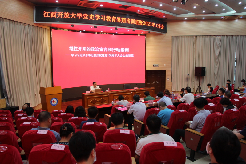8月27日上午,省委宣讲团成员、省委网信办一级巡视员、党史学习教育省委第八巡回指导组组长周森昆为我校党史学习教育暑期培训班作专题宣讲。党史学习教育省委第八巡回指导组副组长张雪黎一行4人出席会议。校党委副书记邓文君主持宣讲会。