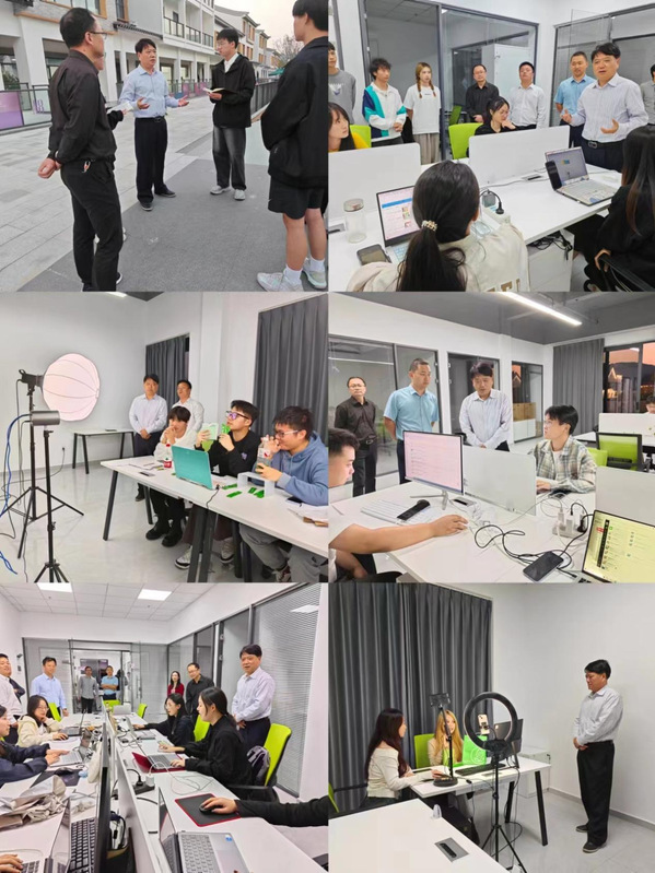 “培养学生的技术应用能力是高职教育的关键任务。制定教学计划过程中,要不断优化教学设计和人才培养方式,建立双师型队伍,鼓励学校老师与企业老师多交流,实现双向互动,以共同提升实践教学的培养效果。”贺瑞虎来到江西淘鑫电子商务有限公司、好时节文化科技(湖州)有限公司安吉实训基地的实践教学教室、实践项目运营现场、专业教学课堂,深入了解专业教学与实践教学融合效果,并与师生进行互动交流,对带队老师的实习教学内容和同学们取得的成绩给予肯定,鼓励大家要继续努力,为未来就业创业做好准备,切实提升自身的竞争力。