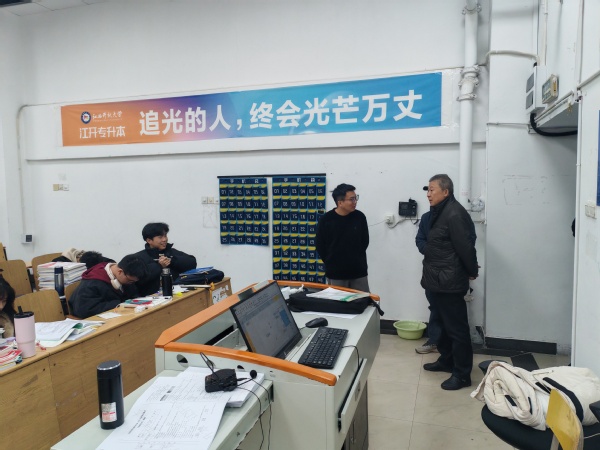 实地检查中,徐光兵看望了假期参加专升本考前培训的261名高职学生,检查了教学楼的消防安全、设施运行、服务保障等情况,走访了授课的线上答疑课堂和线下培训课堂,详细了解了所有学生的安全离校工作,要求每一位学生安全、有序、顺利地离校返乡。在与师生交流中,强调要在做好培训的同时,为学生提供良好的心理疏导、人文关怀和服务保障,让他们感受到学校的温暖。